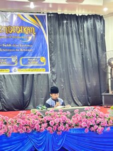 Selanjutnya, pembacaan kalam ilahi dibacakan oleh ananda M. Naufal Muzaki, murid SMP IT Al-Kautsar. Lantunan bacaan Al-Qur’an yang merdu dan penuh penghayatan, sehingga menambah kekhusyukan suasana kegiatan yang menghadirkan nuansa religius sekaligus menjadi pengingat akan pentingnya nilai-nilai spiritual dalam dunia pendidikan.